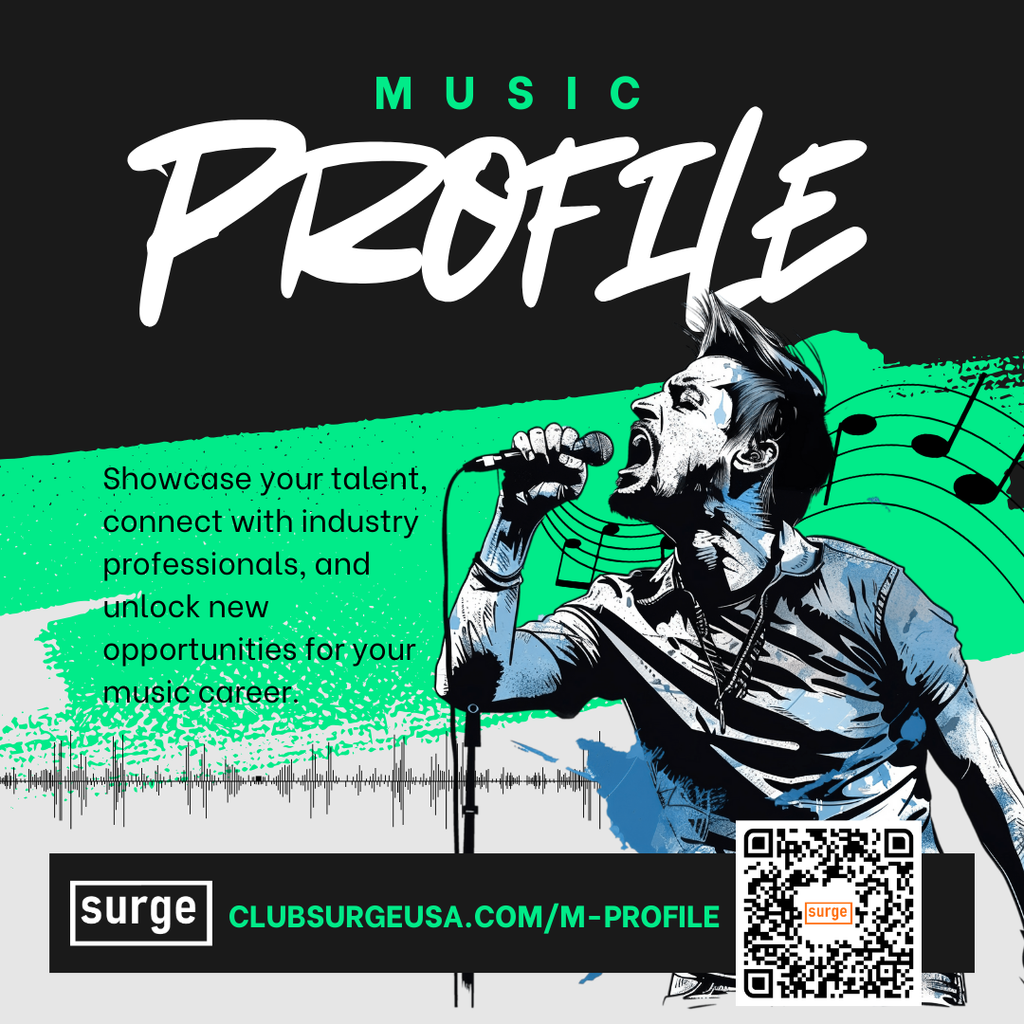 At Club Surge USA, we make it easier for artists to get noticed by providing an opportunity to create a Music Profile that displays everything you want the world to know about your musical journey. This profile can serve as the perfect introduction to your music, allowing others to hear your sound and see your passion for the art.
