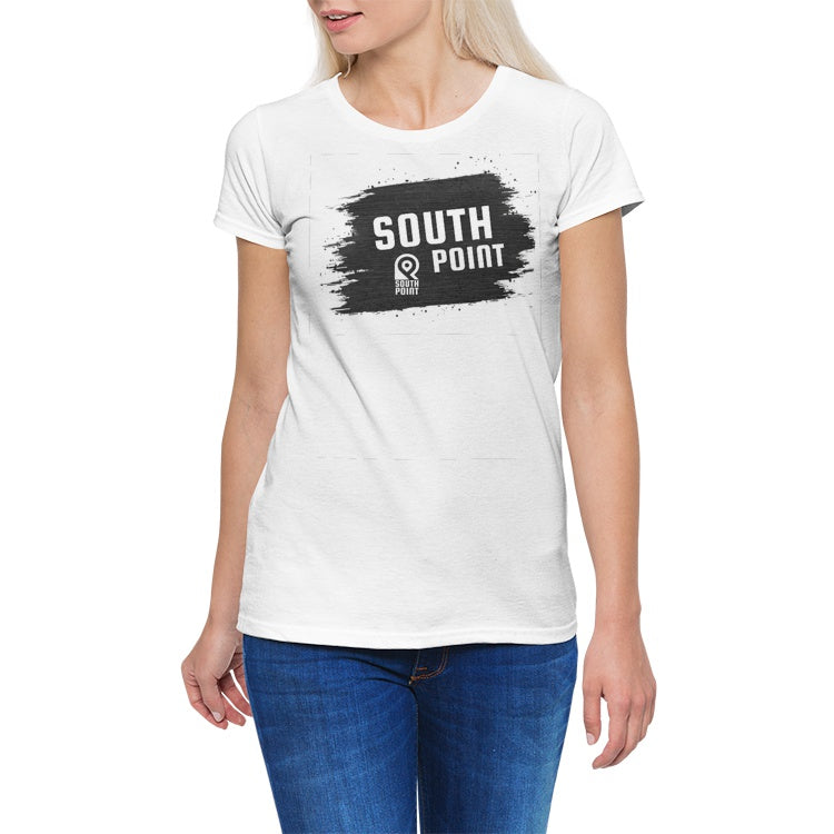 South Point Paint style Logo Women's Stretch CrewNeck Tee White