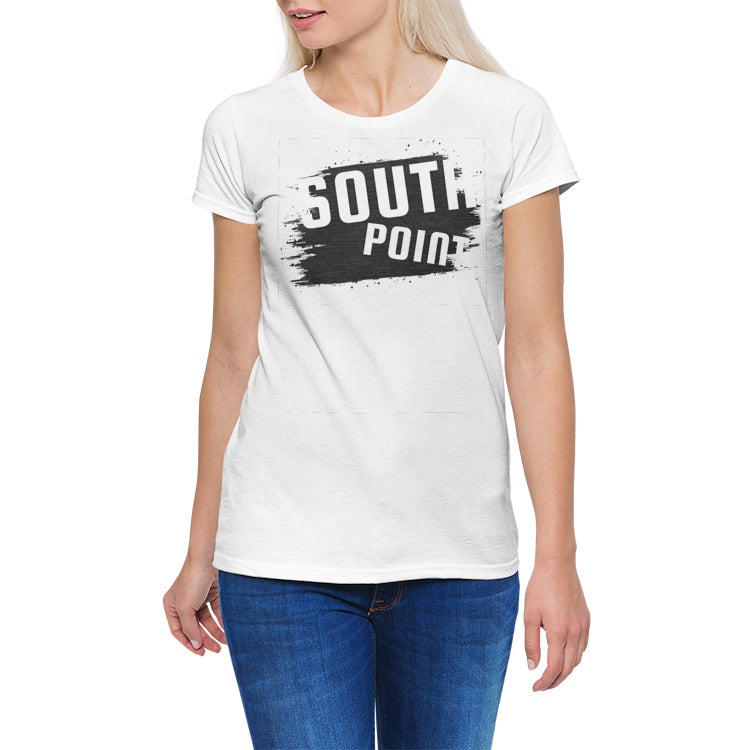 South Point Paint Style Logo Women's Stretch CrewNeck Tee White